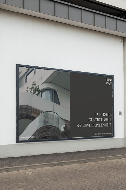 In der Gestaltung des Brandings wurde darauf geachtet, dass sich die markante Lage des Gebäudes (am Hang eines Hügels), sowie der Name des Projektes ("Hills Edge", Deutsch: Hügelkante) in der visuellen Präsenz ausdrückt. Dies wurde v.a. im Bildzeichen der Marke festgehalten, das einen abfallenden Hügel darstellt, welcher von einem Quadrat eingeschlossen wird. Dabei symbolisiert das Logo die Dualität des Gebäudes aus kantiger Moderne und einladender Wärme der verwendeten Materialien, sowie die geografische Lage der Immobilie.